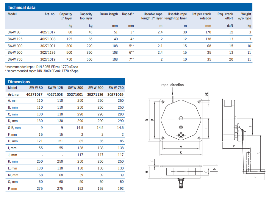 壁繩絞車 SW-W 用于固定安裝。