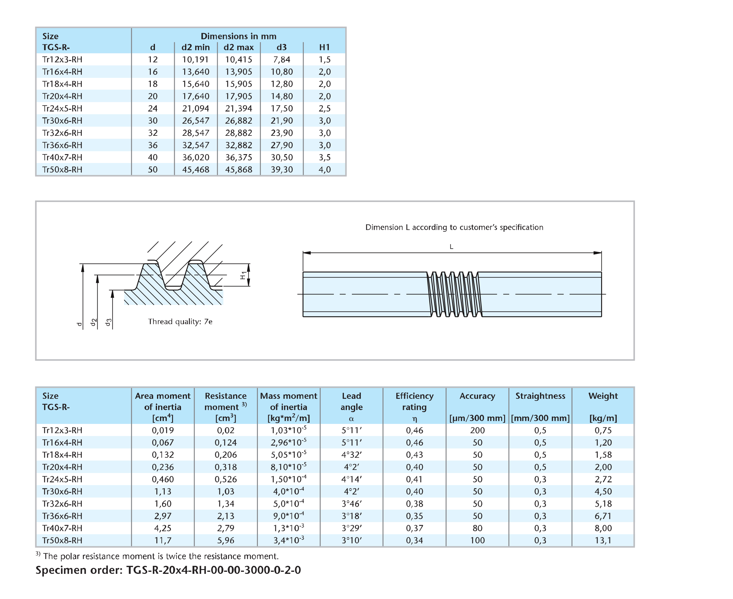 線程形式: Metric ISO trapezoidal thread according to DIN 103-7e 3000